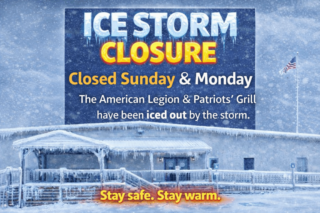 We will be closed this week on Sunday & Monday, due to the ice storm